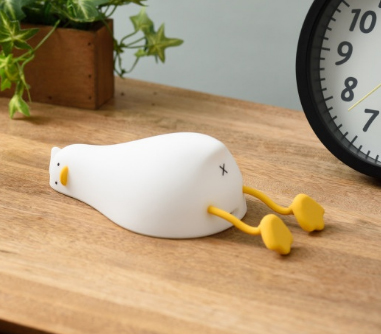 たとえば、床にだらっと伸びた状態のゆるかわアヒルのデザインがかわいいシリコンライト「がんばらないアヒル」は頑張りすぎな方におすすめ。